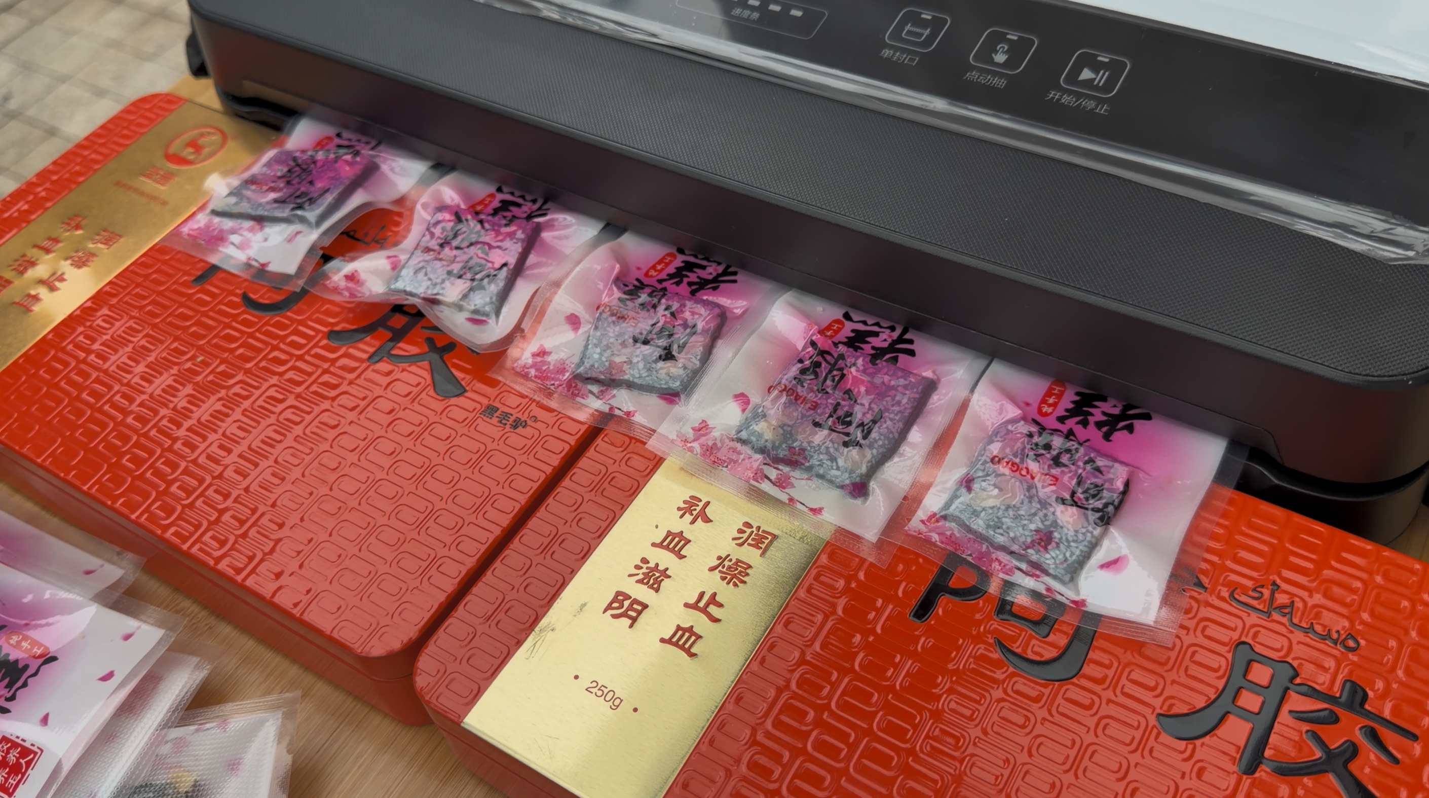 免费提供核桃、黑芝麻、冰糖、黄酒等辅料,并赠送密封保鲜盒,方便储存。现场熬制过程透明可见。